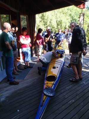 カヤックを組み立てている間にもたくさんの人が見物にやってきた。ファルトボートで参加するのは僕だけではなかったが、フェザークラフトは珍しいのか、それも外人だからか、好奇心に溢れる人達がやってきては挨拶と質問を浴びせてきた。