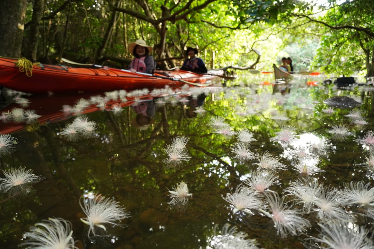 5時から漕ぎ始め、サガリバナを見て折り返しの川の上流で軽い食事とコーヒーを入れます。8時までにはお宿に送迎可能です。