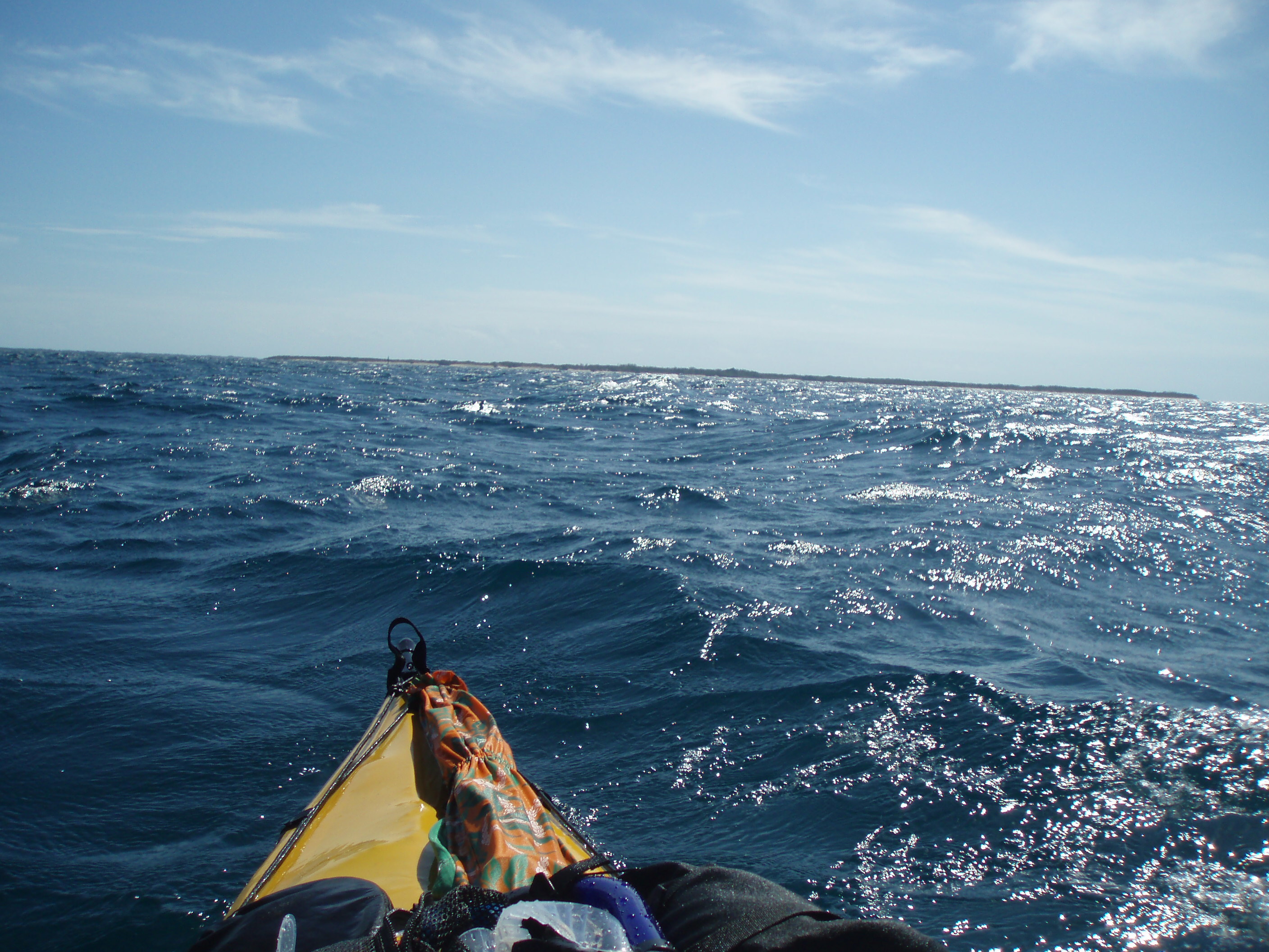 ここから進路を東に取り、さらに漕ぎ進める。海の色は明るくなり、かろうじてサンゴが見える。水の色は例えようもないほど青い。