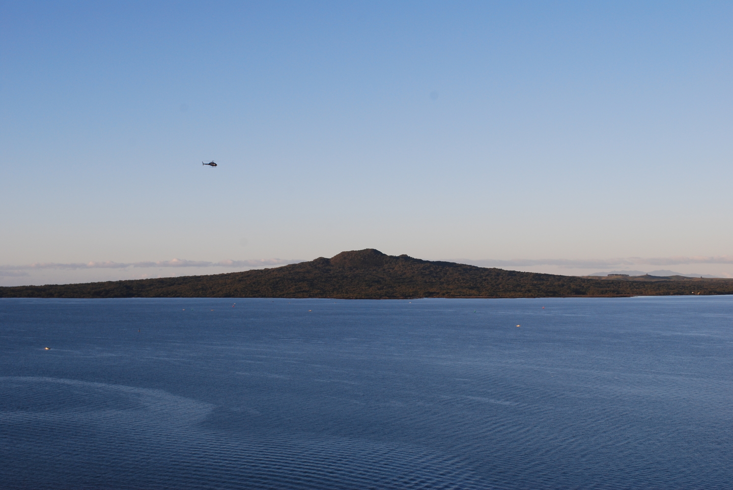 夕日がかった光が差し込み、小さい子供を連れた家族づれや仕事が終わったのかマラソンをする人達、恋人と芝生の上で横になっている人達、とてもゆっくりした空気が流れている。南には電灯を灯し始めたAuckland cityが見え、東にはみごとな円錐形をしたRangitoto Isが見える。