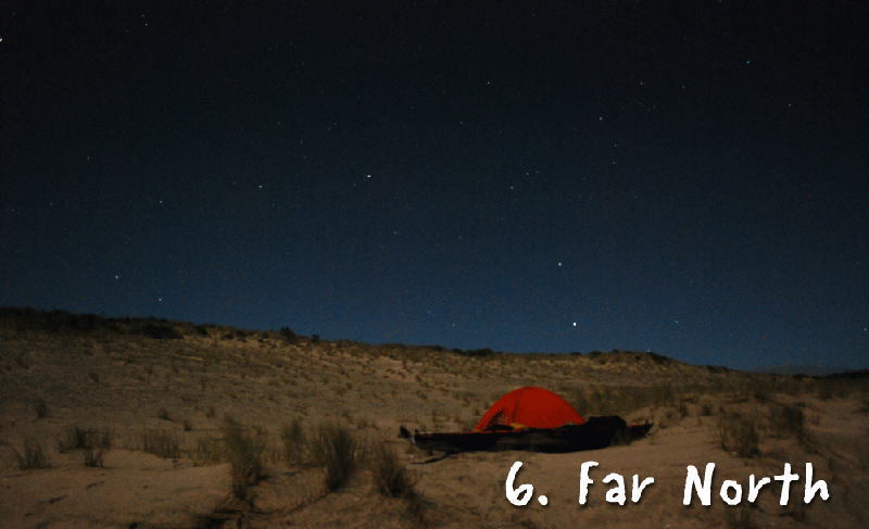 テントを張って移住空間を確保するとカメラを持って辺りをぶらついた。車は侵入禁止のはずなのだがピックアップにオフロードバイクを積んだ如何にもゴロツキ的な感じの男達が柵を乗り越えてやって来て、オフロードバイクでバックカントリーを走りだした。この砂漠的な砂丘の広がりを走るのはさぞかし気持ちよかろうが、エンジン音がやかましくて勘弁願いたかった。どこの国にも変なのはいるのね。