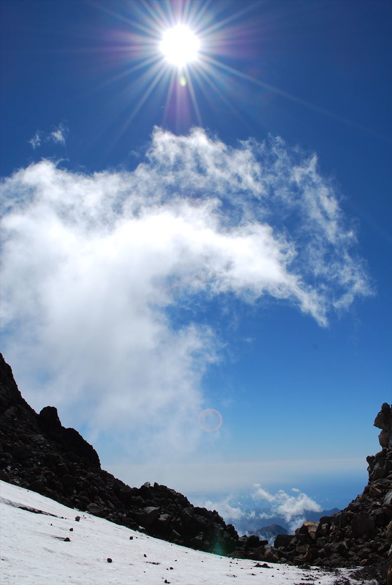 当たり前のことなのだが、ここ最近、登る山登る山、すべて山頂にたどり着いてもガスが出ていて景色を見ることができず、このように雲の上の景色を見るのも久々な経験だった。