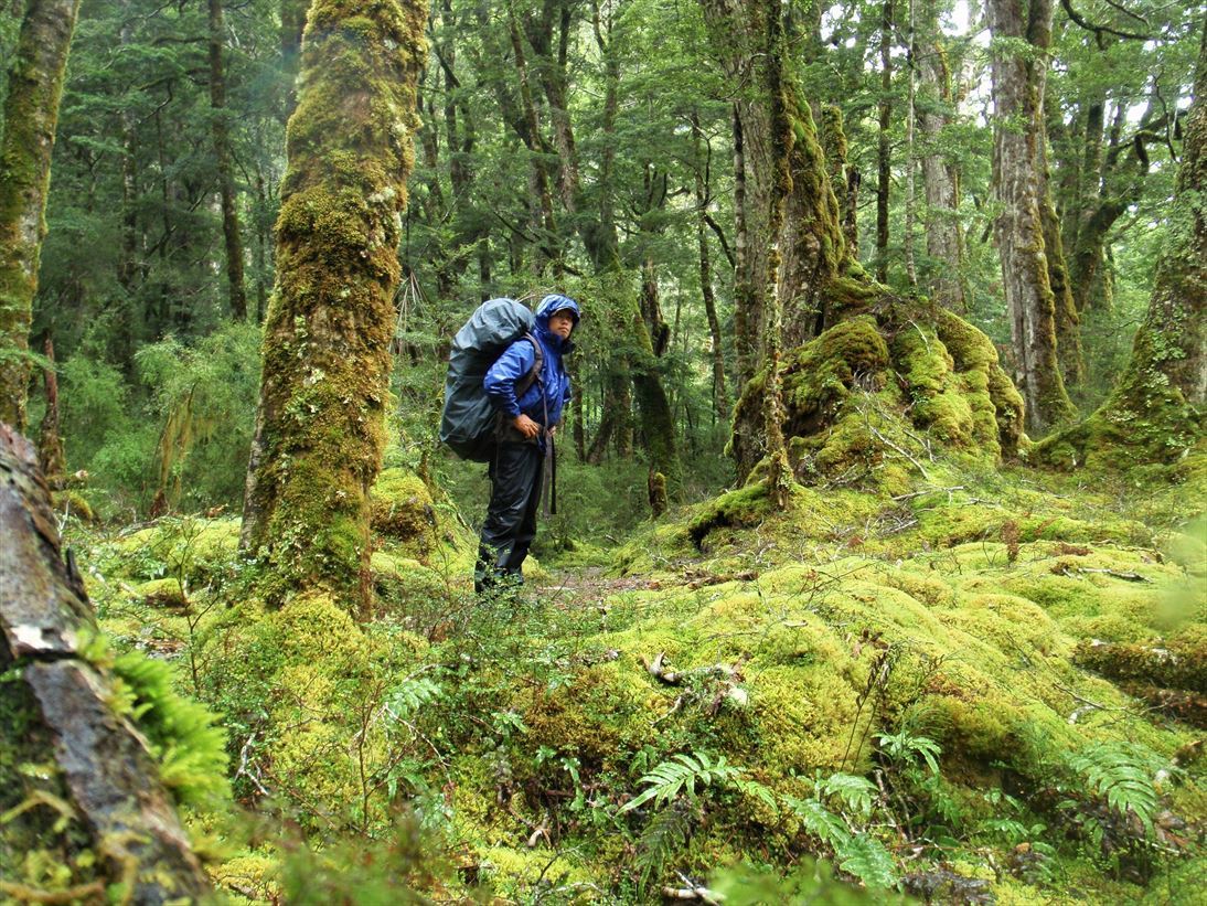 その急な下りを過ぎると今度はうって変わって苔むしたレインフォレストの中を歩いて行く。空気は湿り気を帯び、雨がちらちらと落ちてくるようになってきた。